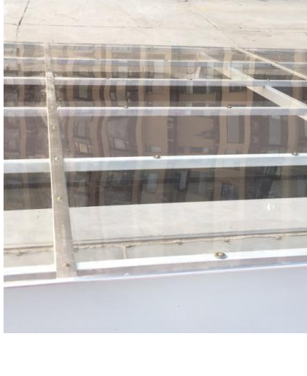陽光板、耐力板上下表面附有PE保護(hù)膜,在施工安裝時,可把底部乳白保護(hù)膜揭去,降板材放置再框架上,正面保護(hù)膜揭開板材接縫處100mm左右用于接縫施工安裝。其余保護(hù)膜再施工安裝完成后,再揭去。
